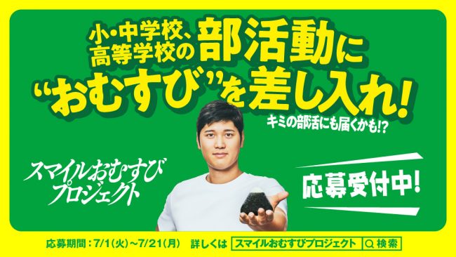 「おむすび差し入れキャンペーン」の応募期間は7月1日(火)から7月21日(月)まで。キャンペーン事務局が選考した17の部活・団体に対し、「部員数×おむすび2個」を差し入れする。