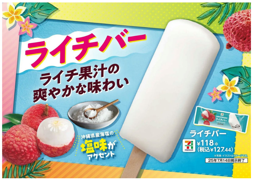 (株)セブン-イレブン・ジャパン(東京都千代田区、阿久津知洋社長)は、沖縄県産の海塩を使用した「セブンプレミアム ライチバー」、「たこ焼きみたいなもっちりボール」「チョコバナナロール」など夏向けの新商品を7月1日(火)から順次発売する。