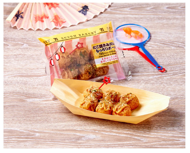 「たこ焼きみたいなもっちりボール」は、生地にだしを練り込むことで、お祭りの人気のたこ焼きの味わいを再現。マヨネーズ入りのソースと鰹節がよりたこ焼き感をアップさせている。ポンポンと口に運べる一口サイズで軽い食感がクセになる商品。価格は195円。期間限定発売。
