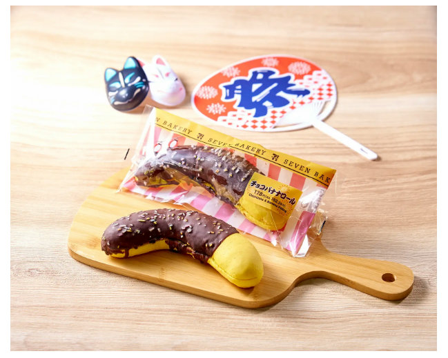 「チョコバナナロール」は、昨年10年ぶりに復刻し話題となった「チョコバナナロール2003年」が、より夏祭りを感じる見た目になって再登場する。バナナのような形状で、中にはバナナ風味のカスタードクリームが入り、カラースプレーチョコを散りばめたチョコバナナロール。価格は178円。期間限定発売。