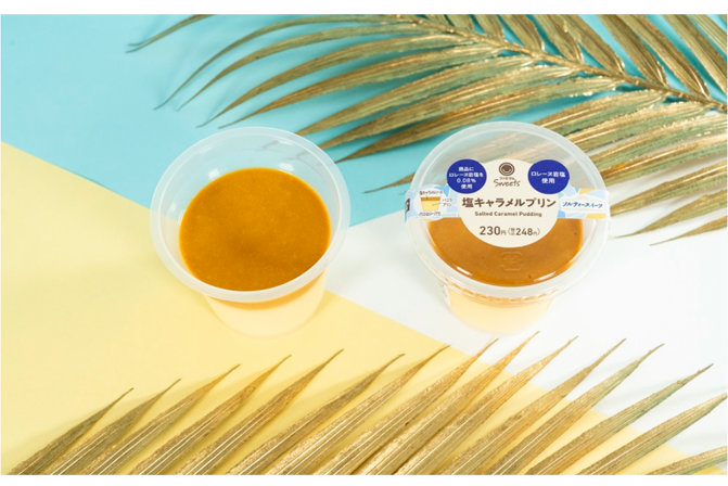 「塩キャラメルプリン」は、プリンの甘さを引き立てるロレーヌ岩塩入りのキャラメルソースをのせた塩キャラメルプリン。価格は230円。
