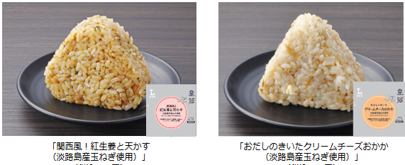 「地産地消」をテーマにしていて、ローソンファーム兵庫で採れた淡路島産玉ねぎを使用した「関西風!紅生姜と天かす」(181円税込 以下同)と、「おだしのきいたクリームチーズおかか」の2品。