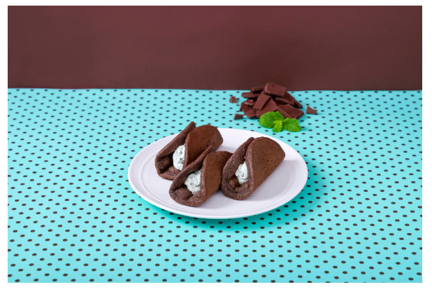「セブンプレミアム チョコミントオムレット 3個入」は、ホイップクリームのミントブルーと、生地のココアブラウンのコントラストが特長のオムレット。清涼感のあるミントが感じられるふわふわのホイップクリームに、パリッとした食感が楽しめるチョコチップを配合。ホイップクリームをふわっとはさむオムレット形状で、一口ほおばるとホイップクリームが口の中で広がる。本体価格は148円(以下同)。北海道・沖縄県・九州一部を除く全国の店舗での販売。