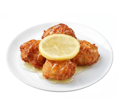 「香港レモンチキン」は、店内で揚げた薄衣のから揚げにスライスレモンを乗せ、オリジナルレモンソースをたっぷりかけたさわやかで甘酸っぱい味わいのから揚げ。本体価格で298円。