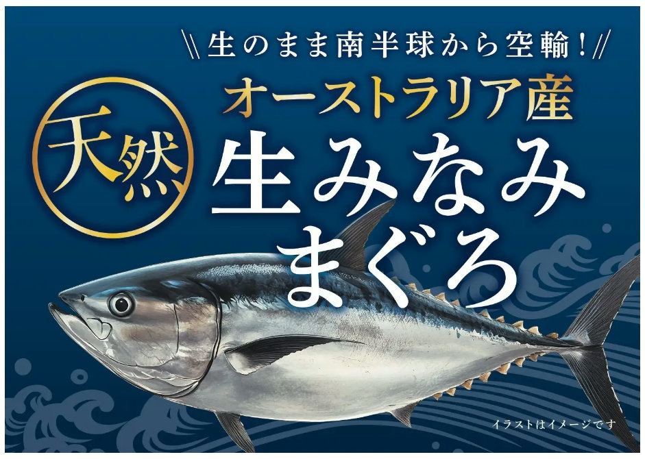 発売する商品は、旬を迎えたオーストラリア産のみなみまぐろを、航空便で調達して一度も凍らせずに生のままで提供する。また、今回から供給体制を整えたことで、エリアごとの限定販売から、関東・北陸信越・東海・近畿・中四国エリアの「イオン」「イオンスタイル」219店舗で同時に販売することが可能となった。
