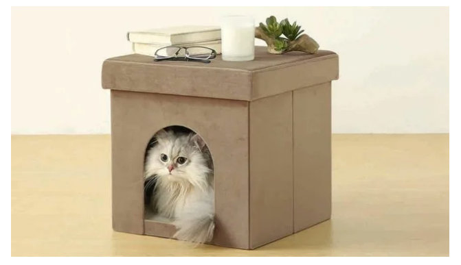 デコホームの人気商品「折りたためる収納スツール」シリーズから、ペットが中に入ってリラックスできるアイテムが新たに登場した。ペットが中にいない時はスツールとして使用が可能だ。