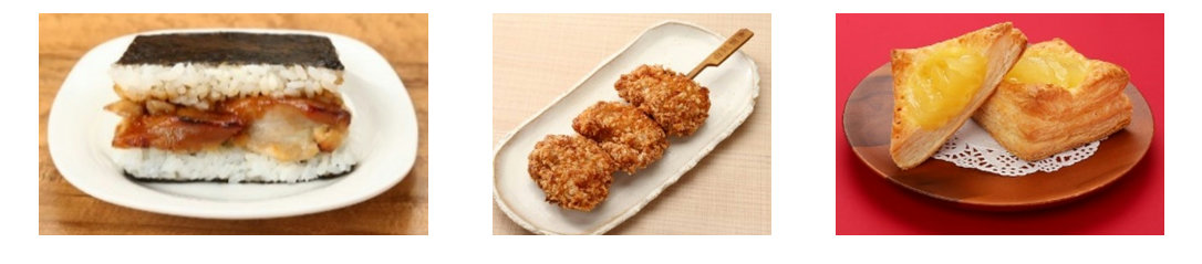 発売する6商品は、信州上田で60年愛される、にんにくがしっかりときいた醤油ベースの「美味(おい)だれ」を使用したご当地グルメ「美味(おい)だれ焼き鳥」をおにぎりにした「美味(おい)だれ焼き鳥おにぎり」354円(税込価格、以下同)、長野県のご当地グルメ「山賊焼き」をイメージし、にんにくを効かせた醤油タレに漬け込んだチキンをからっと揚げた「山賊焼き串」248円、長野県産シナノゴールドのジャムと、カスタードを合わせたクリームをパイ生地に塗って焼き上げた「ごろっとりんごパイ(長野県産シナノゴールドりんごのジャム)」289円。