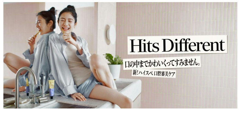 「Hits Different」は、口全体を美しくする美容と洗面台までも洗練させるビジュアルイメージ。歯はもちろん、口の中も毎日の歯磨きルーティンも、トータルで美しくプロデュースする。