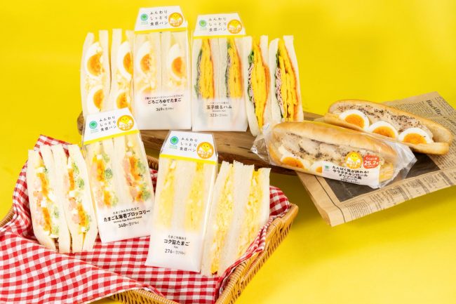 また8月5日から販売するのは、ゆでたまごをごろごろ約1.5個分使用する「ごろごろゆでたまごサンド」369円、「玉子焼&ハムサンド」323円の2種類。