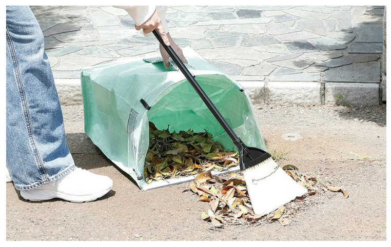 庭木や街路樹の葉が落ち葉となり始める秋に向け、ちりとりとしても使えるスタンドバッグを開発。発売する「ちりとりにもなるスタンドバッグ」は、ワイヤー入りで自立し、上部のふちの一辺にちりとり用のゴム板が付いているので、ちりとりとして使うことが可能。また、70Lのごみ袋がぴったりフィットするので入れたごみをそのまま捨てることができる。