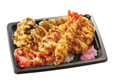 「秋のよくばり海老天重」は、惣菜部門で年間売上No.1を誇る人気商品。プリプリ食感が自慢のブラックタイガーに、まいたけ・さつま芋と旬の素材を盛り込んだ。本体価格で498円(以下同)。8月19日(火)から発売。