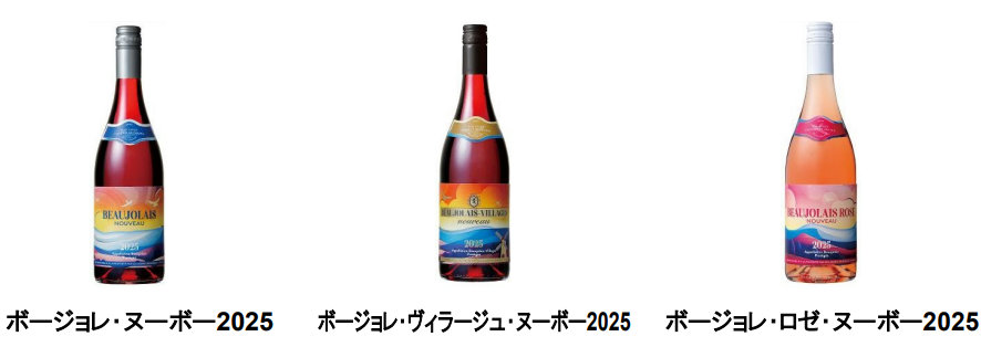 「ボージョレ・ヌーボー2025」は、ガメイ種のぶどうで造った、新鮮で軽やか且つフルーティーな味わい。750mlで2180円(本体価格、以下同)。10月1日まで早期割引価格1980円で発売する。