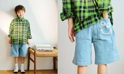 •「チェック長袖シャツ」と「デニムハーフパンツ」