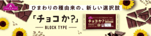 イオンは今年6月に国内で初めて、チョコレート代替品である “ChoViva”(チョビバ)を使用した菓子、「チョコか? WITH BISCUIT(ウィズ ビスケット)」を発売した。“ChoViva”は、現行の農地で栽培されたひまわりを原料としており、熱帯雨林の伐採を必要としない点や、生産過程で利用する土地や水の消費量が少なく済む点など、カカオ由来のチョコレートと比較して環境負荷の低減につながることから、持続可能な原料として世界的に注目されている。