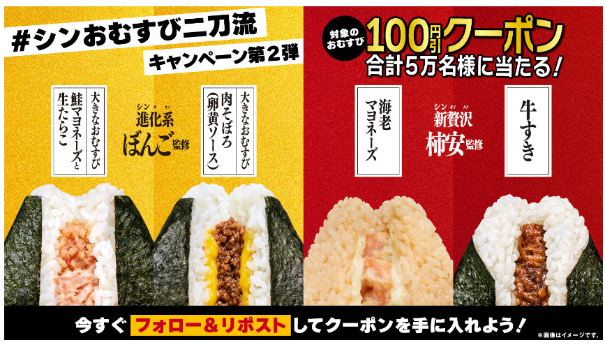 また3週連続で、ファミリーマート公式Xで「#シンおむすび二刀流 キャンペーン」第2弾を実施する。9月2日(火)~9月11日(木)の期間に、ファミリーマート公式Xアカウント(@famima_now)をフォローして対象の投稿をリポストし、特設サイトから抽選に参加すると、対象のおむすびが100円引きになるクーポンを抽選で5万名にプレゼントする。