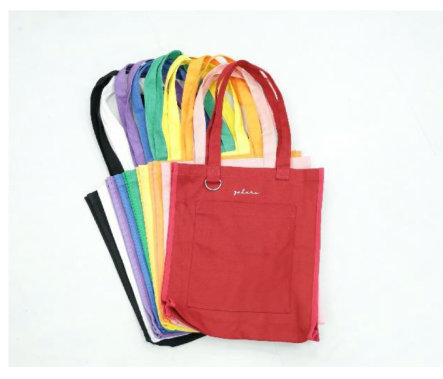 「カラーキャンバストート」は、推し色が見つかる、ブラック、ホワイト、ブルー、パープル、グリーン、レッド、オレンジ、ピンク、イエローの9色展開の神コスパのトートバッグ。サイズは約9ℓで、780円。