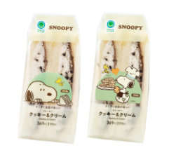 「スヌーピー クッキー&クリームサンド」は、白黒のビーグル犬であるスヌーピーのカラーをイメージした、ざくざく食感が楽しいクッキー&クリームのサンドイッチ。本体価格で369円(以下同)。