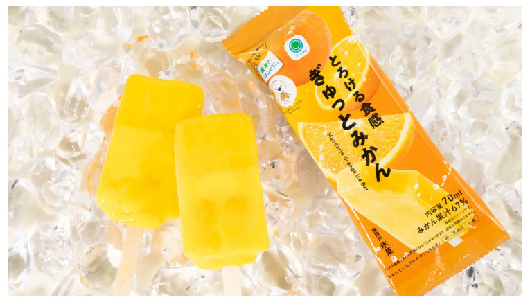 和歌山産有田みかんの果汁を使ったアイスバーは、2023年から毎年発売しており、今年で3年目の発売となる。