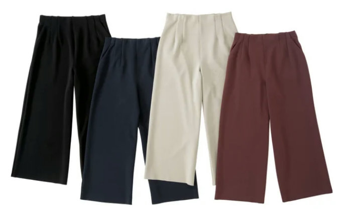「ソフトストレッチセミワイドパンツ」は、縦にも横にも伸びる2wayストレッチで快適な着心地だ。サイズはSS~LLまでの5サイズ展開で、カラーはブラック・ネイビー・グレージュ・ブラウンの4色。レギュラー丈とロング丈の2種で、3990円(税込価格、以下同)。