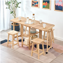 スツールが収納できる伸長式のダイニングセット。