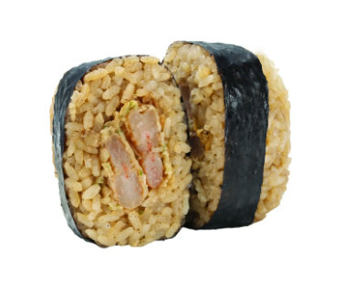 「世界の山ちゃん監修 幻のコショウ使用 名古屋めし 海老天むす」は、辛さと風味が際立つ「幻のコショウ」と醤油、天だれをごはんに混ぜ込み一口目からコショウがしっかり感じられおむすび。海老は2尾使用。276円(本体価格、以下同)。