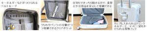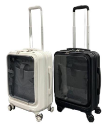 フロントポケットには、中のグッズをしっかり魅せるための透明度と、通常の使用に問題ない丈夫さを備えるポリカーボネートを使用した。本体と別の素材にする製造コストが上がってしまうが、企業努力により、推し活に無理のない範囲で投資できる価格(1.5万円以下)での商品化を実現した。遠征時に推しへの強い愛情を表現することができるとともに、グッズの配置や推し色の組み合わせを工夫することで、自分だけの特別なキャリーケースをつくることができる。