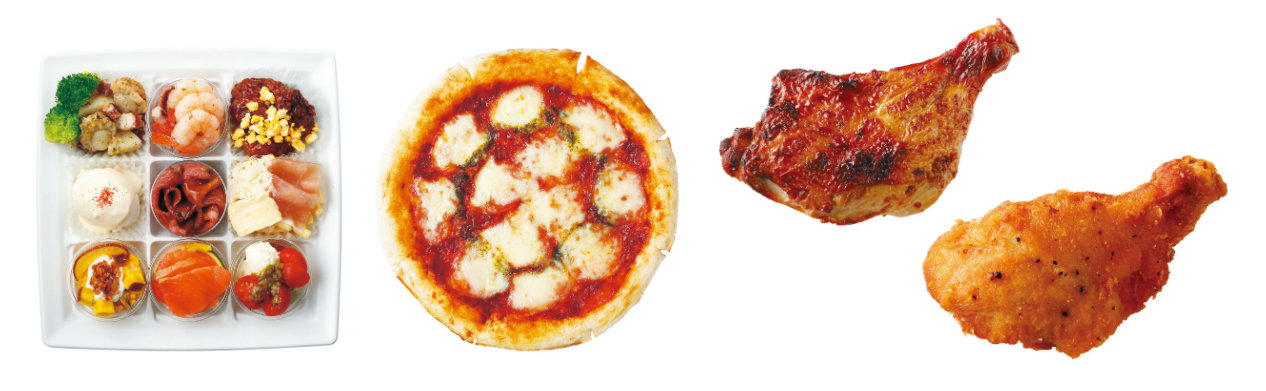そのほか、オードブル・ピザには「カップデリ スペシャル2025」2778円や「熟成生地のマルゲリータピッツァ」1250円、クリスマスチキンには「炭火焼きローストチキンレッグ」556円や「スペシャルななチキ」352円を品揃えする。