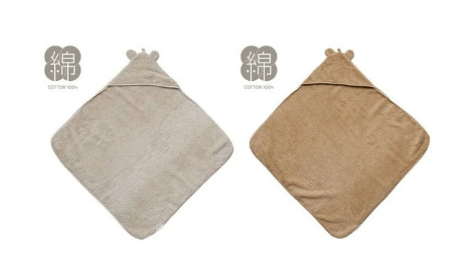 長方形と正方形の2タイプに、フード部分に耳をあしらったかわいらしいデザインも展開する。色はベージュとグレーの2色。