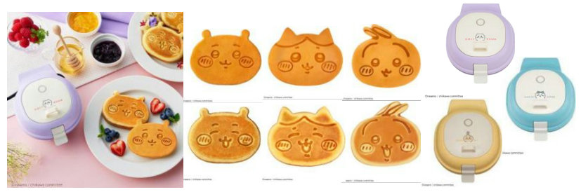 「こんがりきゃらパンケーキメーカー ちいかわ/ハチワレ/うさぎ」は、「ちいかわ」のキャラクターの顔を型取ったパンケーキを誰でも手軽につくることができるパンケーキメーカー。表面と裏面で違った表情の絵柄のパンケーキを綺麗に焼くことができる。価格は3980円(本体価格、以下同じ)。