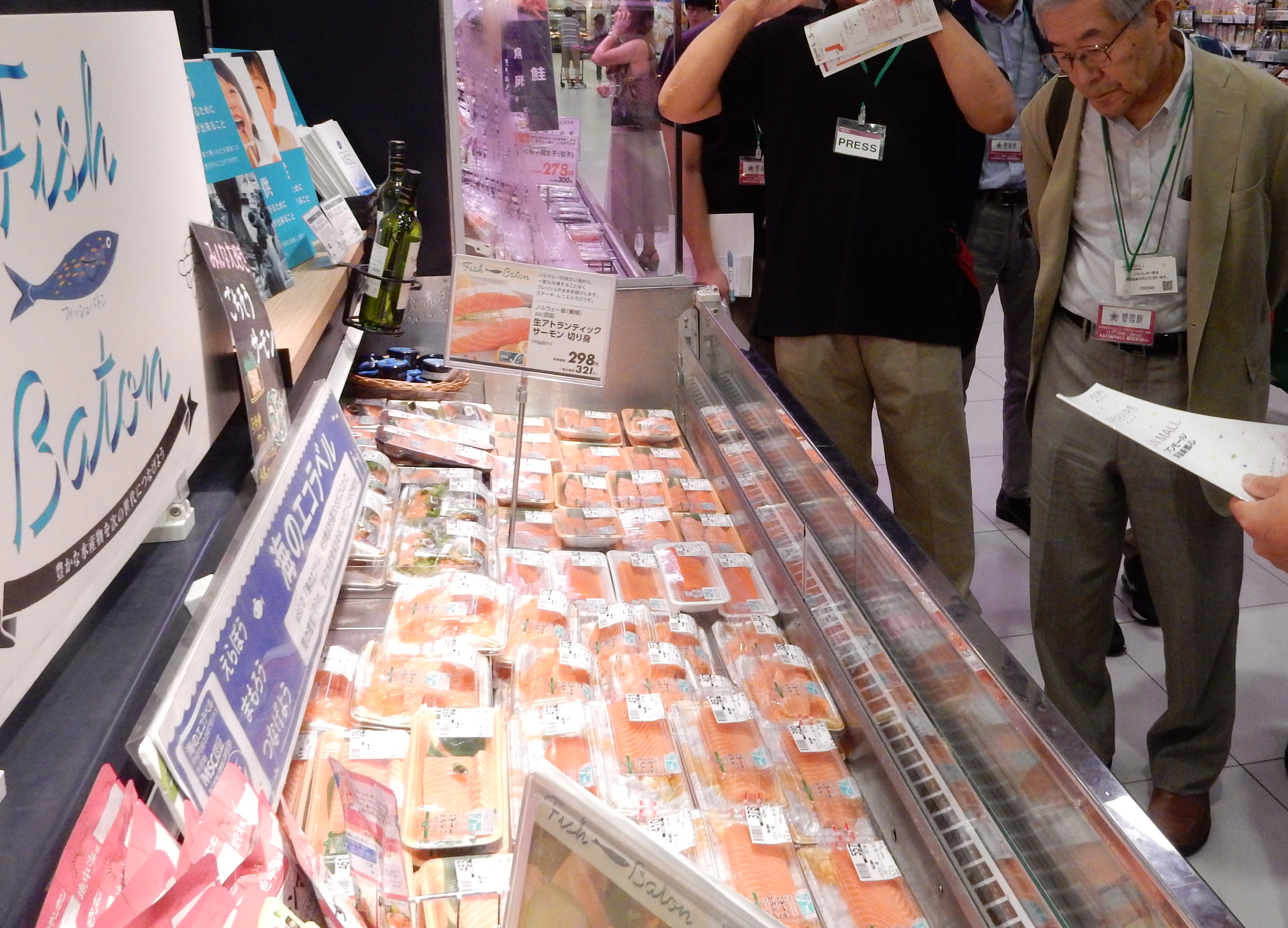さらにイオンでは、鮮魚売場に、MSC認証、ASC認証の水産物を集めた専門売場「フィッシュバトン」を設け、認知度向上に取り組んでいる。現在では、関東を中心に「フィッシュバトン」売場は51店舗で展開されている。2020年までに100店舗まで広げていく計画だ。