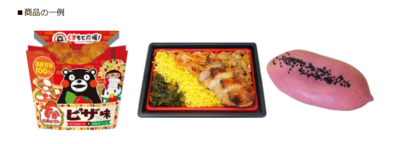 これを皮切りに4月4日(火)には、「でからあげクン ピザ味(熊本県産トマト&阿蘇産バジル)」「天草大王使用の鶏めし重」「熊本県産 真鯛の鯛めしおにぎり」「メロンパンサンド(肥後グリーンメロンジャム&大阿蘇低温殺菌牛乳入り ホイップ)」「まるでさつまいもパン(大分県産さつまいも『甘太くん』入りクリーム)」の5品を発売。