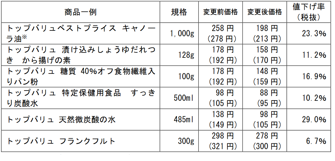 イオンニュース|グループ各社でトップバリュ商品とNBを合計254品目値下げ