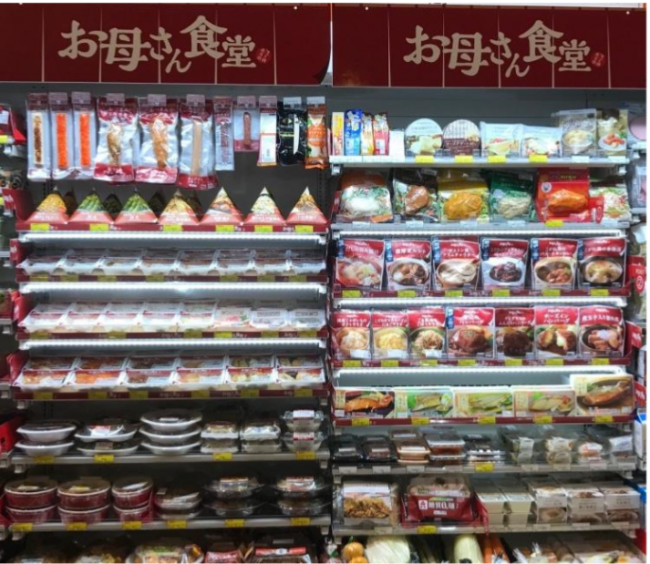 第2に、翌日のお弁当のおかずや、週末の献立のための買い置き需要に対応した、パウチタイプのサラダやハンバーグなどの「スタンドパック商品」約20種類。