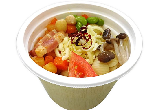 商品は「熱く燃えろ!Cスープ(辛いトマトスープ)」(税込価格330円、以下同)、「鮭と明太子のごはん(いい子いりこ入り)」(298円)、「ひろしま愛あんかけ(鶏唐揚げ)」(430円)、「鉄板仕上げ!塩レモン焼きそば」(460円)、「レモンとブロッコリーのマドレーヌ」(110円)の5アイテム。