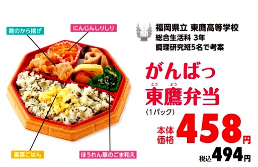 検索ワード:イオン九州 マックスバリュ九州 福岡県立東鷹高等学校 学校法人杉森学園杉森高等学校 弁当 プロデュース