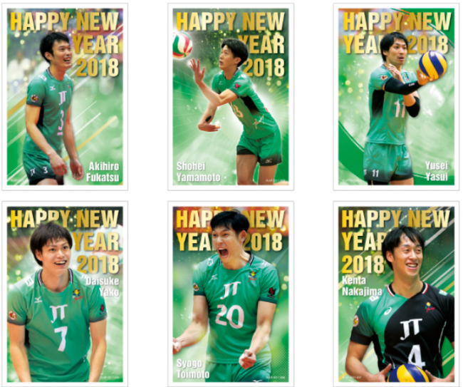 バレーボールプレミアチームのJTサンダーズ。6選手各1枚入り700円。