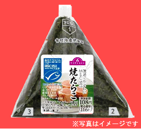 また、MSC認証のたらこは、卵を持つ2~4月に獲れたすけとうだらのものだ。こちらも一昼夜、イオンオリジナルのタレにつけて味をしみさせたあと香ばしく焼き上げている。本体価格108円。