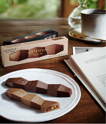 チョコレートとパッケージのコンセプトデザインには、スペインの新進気鋭デザイナーヴィクター・カラスコ氏を起用。チョコレートの表面にはGODIVAのスペル文字が刻印され、カッティングしやすいモダンな形状に仕上げている。