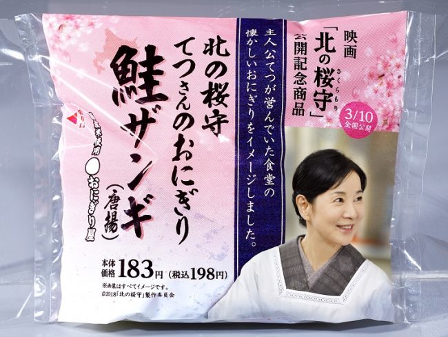 映画では主人公・江蓮てつ(吉永小百合)が営む食堂が舞台となり、その看板メニューとしておにぎりが登場する。また、てつの息子が経営するホットドッグストアも登場する。おにぎり2商品には、映画の舞台となった北海道の食材を使用し、商品パッケージには、てつの写真がレイアウトされている。高齢のサユリストファンにはたまらないパッケージに仕上がっている。