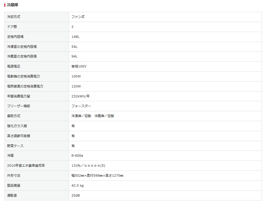 冷蔵庫は、一人暮らしや2台目ユースにも適した大容量の148ℓサイズ。冷凍室は、整理をしやすいように3段ケースの引き出しを採用している。