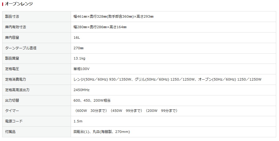 オーブンレンジは、庫内容量16ℓで一人暮らしにちょうど良いサイズ感である。あたためセンサーには重量センサーを採用し、ワンタッチ操作が可能だ。