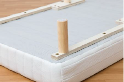 また、圧縮ボンネルマットの採用によって、大型サイズでありながら持ち帰りしやすい梱包サイズにまとめてある。したがって自分で持ち帰ってすぐに使用することができる 。さらに、 商品を開封して元のマットレスの形状に戻した後、本体に桟と脚を取り付けるだけで簡単に組み立てることができる。