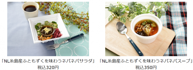 一つは「NL糸島産ふともずくを味わうネバネバサラダ」(税込価格320円)。もずくをメインにオクラやなめこなどのネバネバ食材を合わせた春雨サラダで、九州産かぼす果汁を加えてさっぱり味に仕上げている。