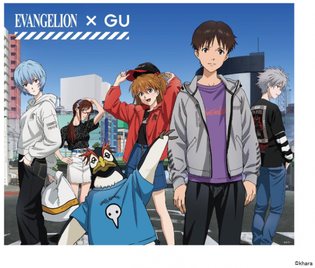 コラボレーション企画のための描き下ろしポスターが制作された。劇中の主な登場人物がそのキャラクターに合ったGUのアイテムを着用している姿が描かれている。これはエヴァンゲリオンファンにはたまらない。訴求力が高そうだ。