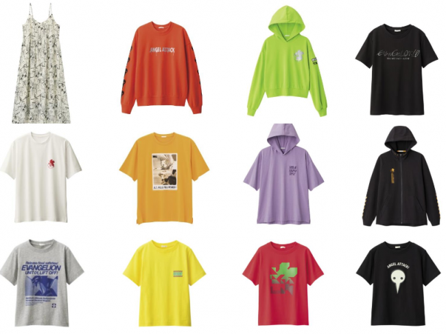 コラボ商品は、トレンドのスポーツテイストをテーマにして、ウィメンズ、メンズ、キッズ(ボーイズ)を展開する。グラフィックTシャツやプルパーカには、劇中の主な登場人物のほか、エヴァンゲリオンカラーで彩ったモチーフがデザインされている。