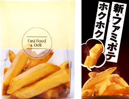 第1に「ファミポテ」を全面刷新する。レジ横カウンター「ファミ横商店街」のフライドポテト。カナダ産のじゃがいもを使用し、ホクホク感を出しながら、中はしっとりとした食感に仕上げている。北米産の岩塩「リアルソルトシーズニング」「明太マヨソース」「サラダエレガンス」「トマトケチャップ」と4種類のシーズニングを使用。従来の「ファミポテ」と比べて、容量は約1.5倍と増量しながら、手頃価格の税込価格158円、以下同じ)に改訂している。「ファミポテL皮付き」は180円。