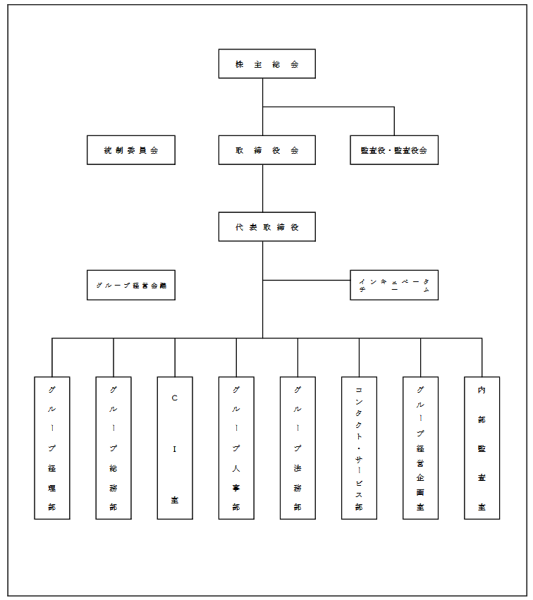 第1に、グループ全体を統括する部署に「グループ」の名称を付ける。これによりグループ管理体制の強化と責任の明確化を行う。