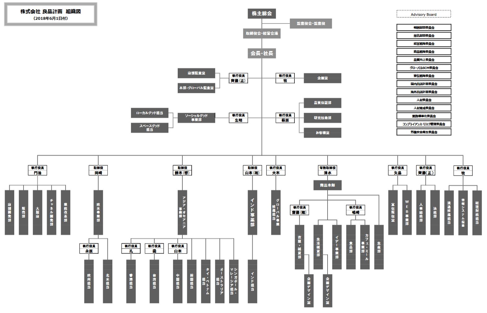 鈴木啓氏は、「取締役 兼 執行役員 東アジア事業部長 兼 MUJI Korea Co., Ltd. 管掌」から、「取締役 兼 執行役員 アジア・オセアニア事業部長 兼 MUJI Korea Co., Ltd.」に役職名が変更となる。またMUJI(SINGAPORE) PRIVATE LTD. グループ企業、MUJI Retail (Thailand) Co., Ltd.、MUJI PHILIPPINES CORP. 管掌を兼務する。