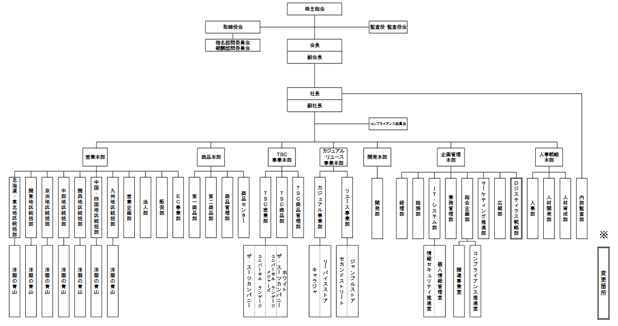 青山商事|6/1付けで企画管理本部内に「ロジスティクス戦略部」新設