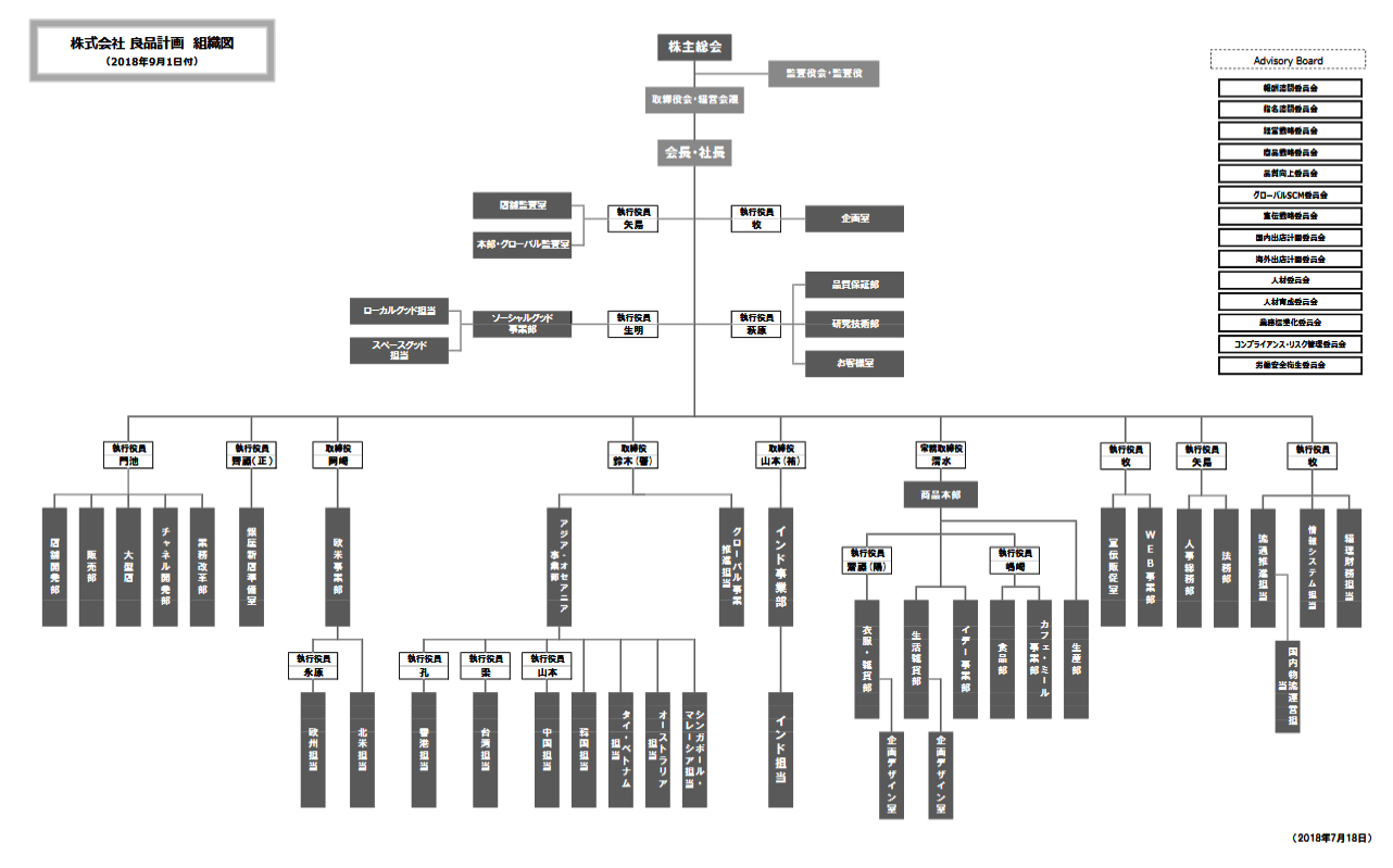 (株)良品計画(東京都豊島区、松﨑曉社長)は、9月1日(土)付けで組織変更と役員人事を行う。